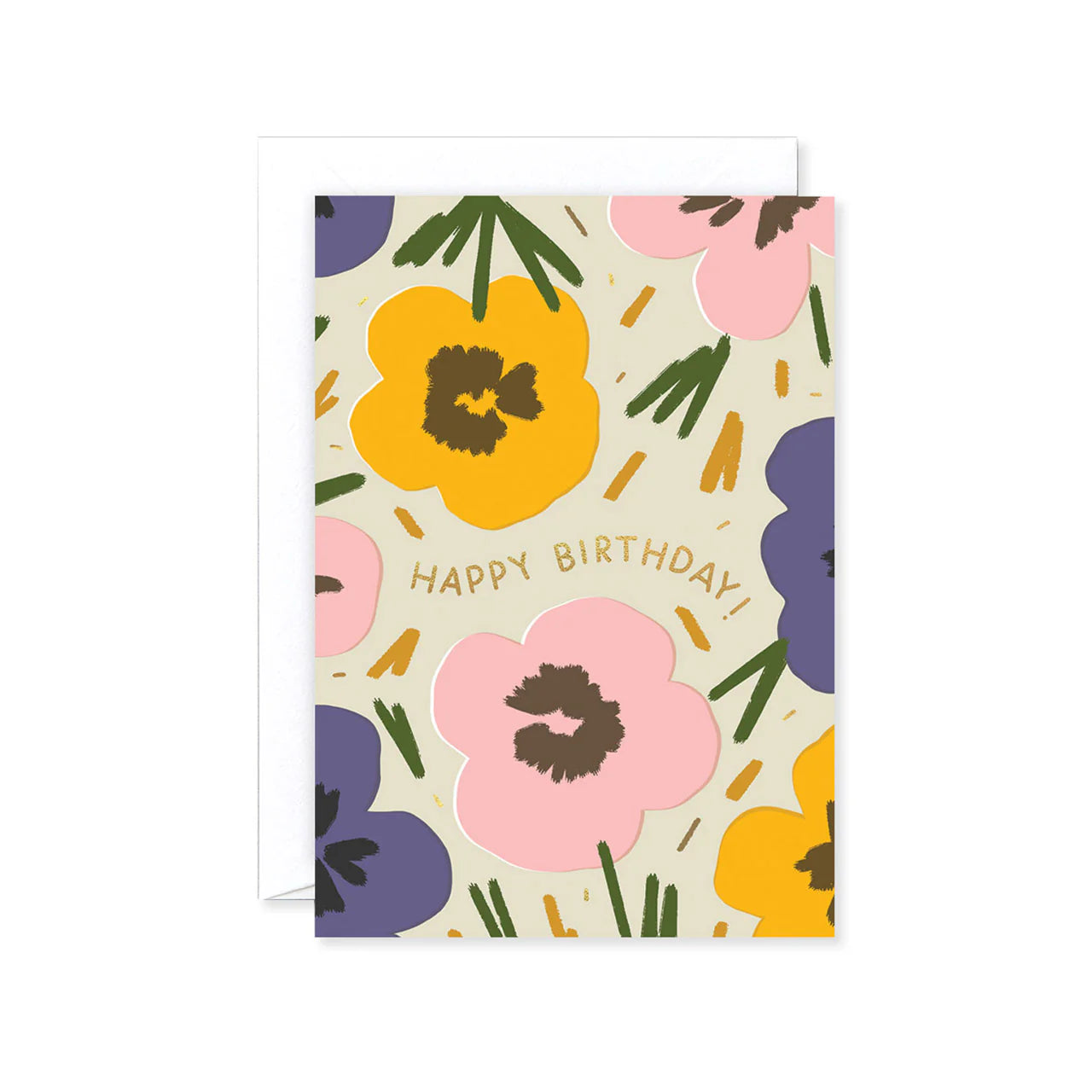 Fresh birthday blooms, illustrated with energetic line work and sunshine hues. This floral birthday card has been finished with a sprinkling of gold foiled details for an extra special touch.