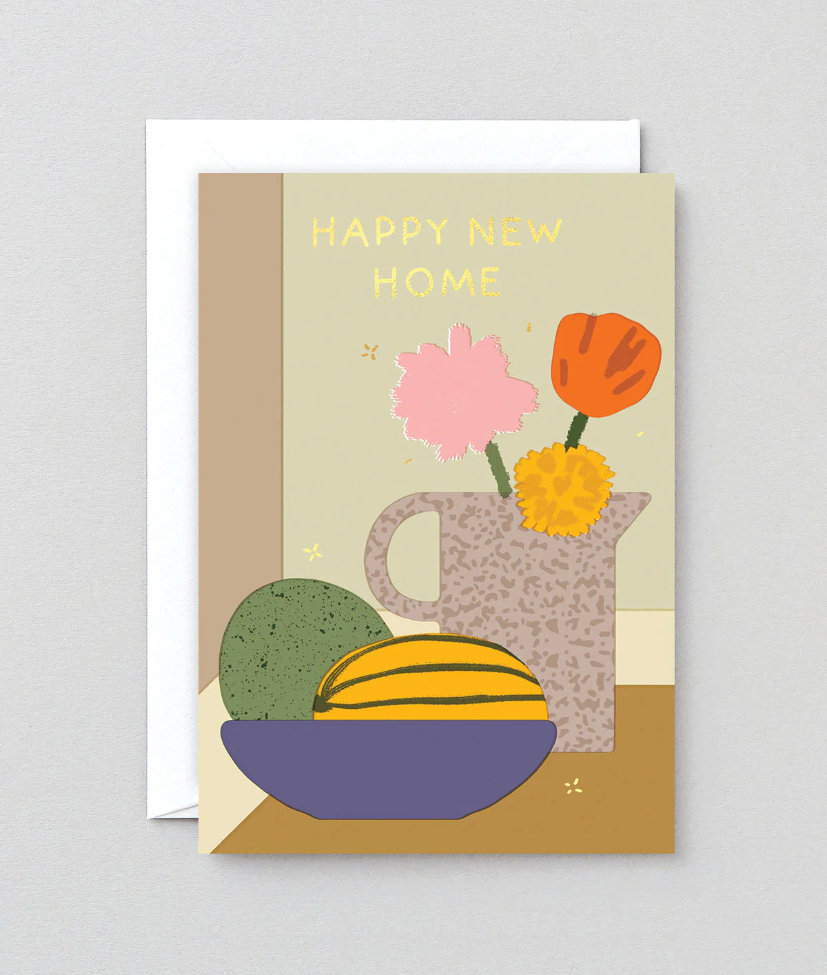 This serene still life card will make a lovely addition to any new home. Finished with gold foiled detailing and a soft palette.