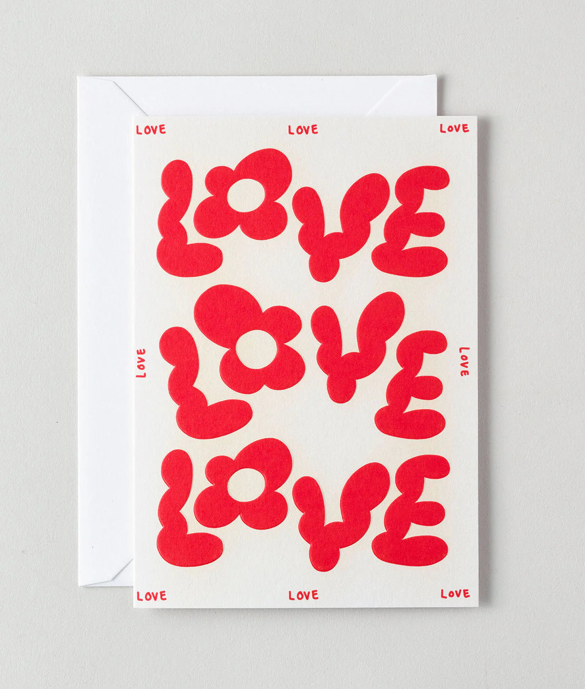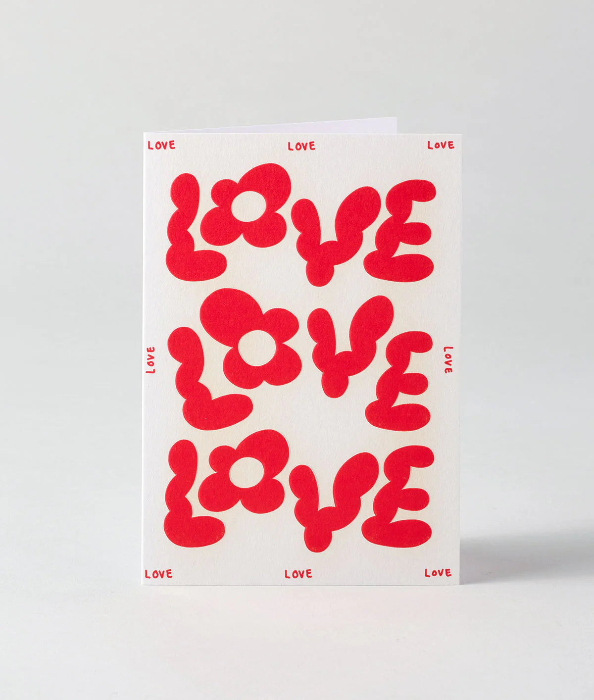 A loved-up greetings card with a bubble type with a romantic red hue from Micke Lindebergh.