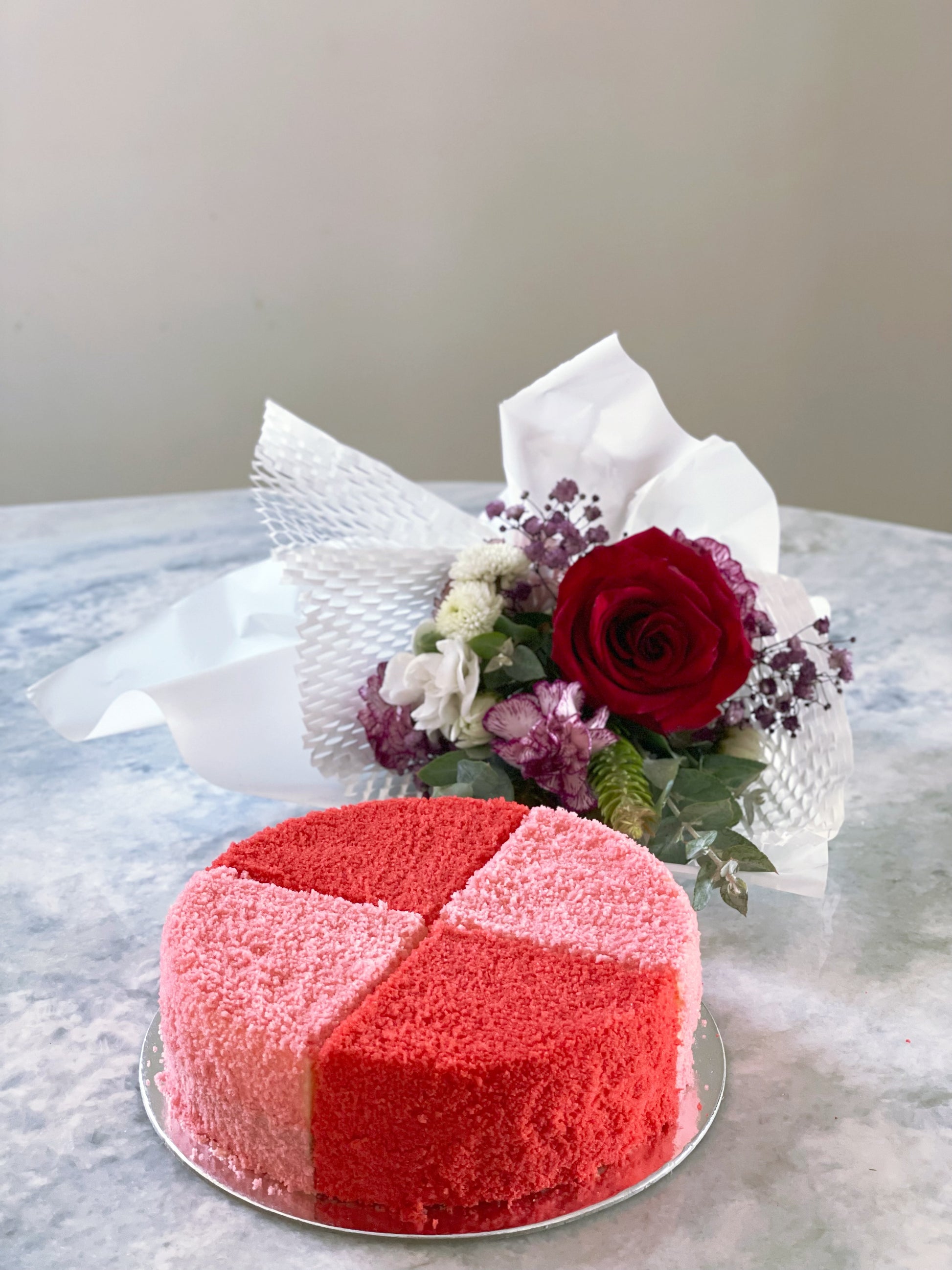 This beautiful set features our signature Double Fromage Cheesecake in a romantic half-and-half flavour combination:
